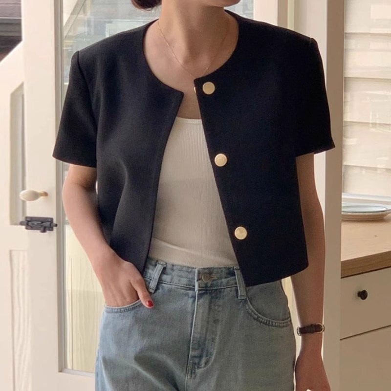 フロントのゴールドボタンがアクセントとなり、シンプルながら華やかさをプラス。